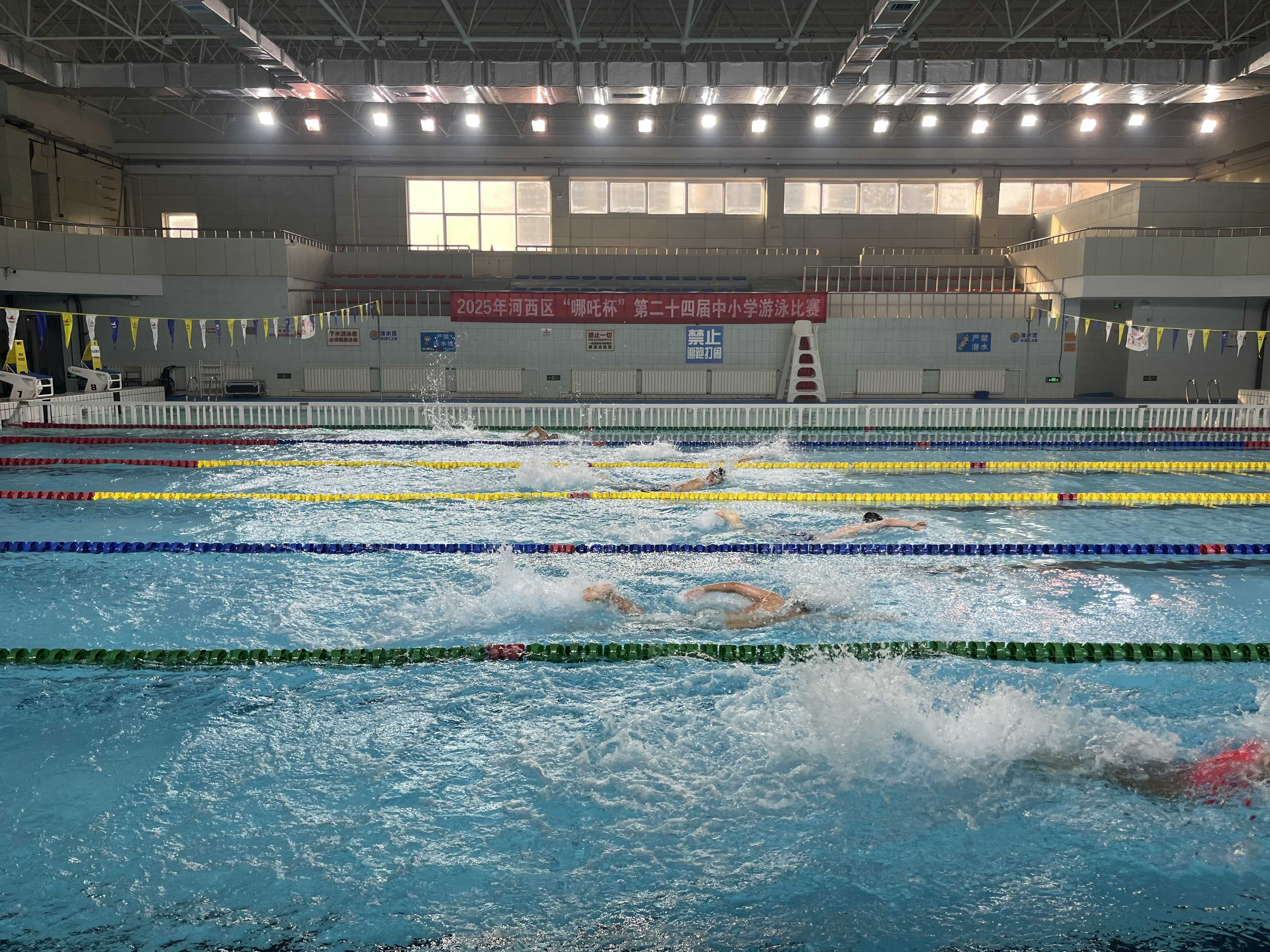 11月22日,由河西区体育局、河西区教育局联合主办,河西区少年儿童业余体育学校、河西区全民健身服务中心共同承办的河西区“哪吒杯”第二十四届中小学游泳比赛在北京师范大学天津附属中学游泳馆顺利举行。本届赛事共吸引全区700名运动员参赛,覆盖初中组、小学甲组、乙组、丙组等多个学段,设置50米自由泳、蛙泳、仰泳、蝶泳,100米个人混合泳,以及4×50米自由泳接力、混合泳接力等共22个项目,无论是参赛人数、项目设置还是组织规模,均创历届之最。