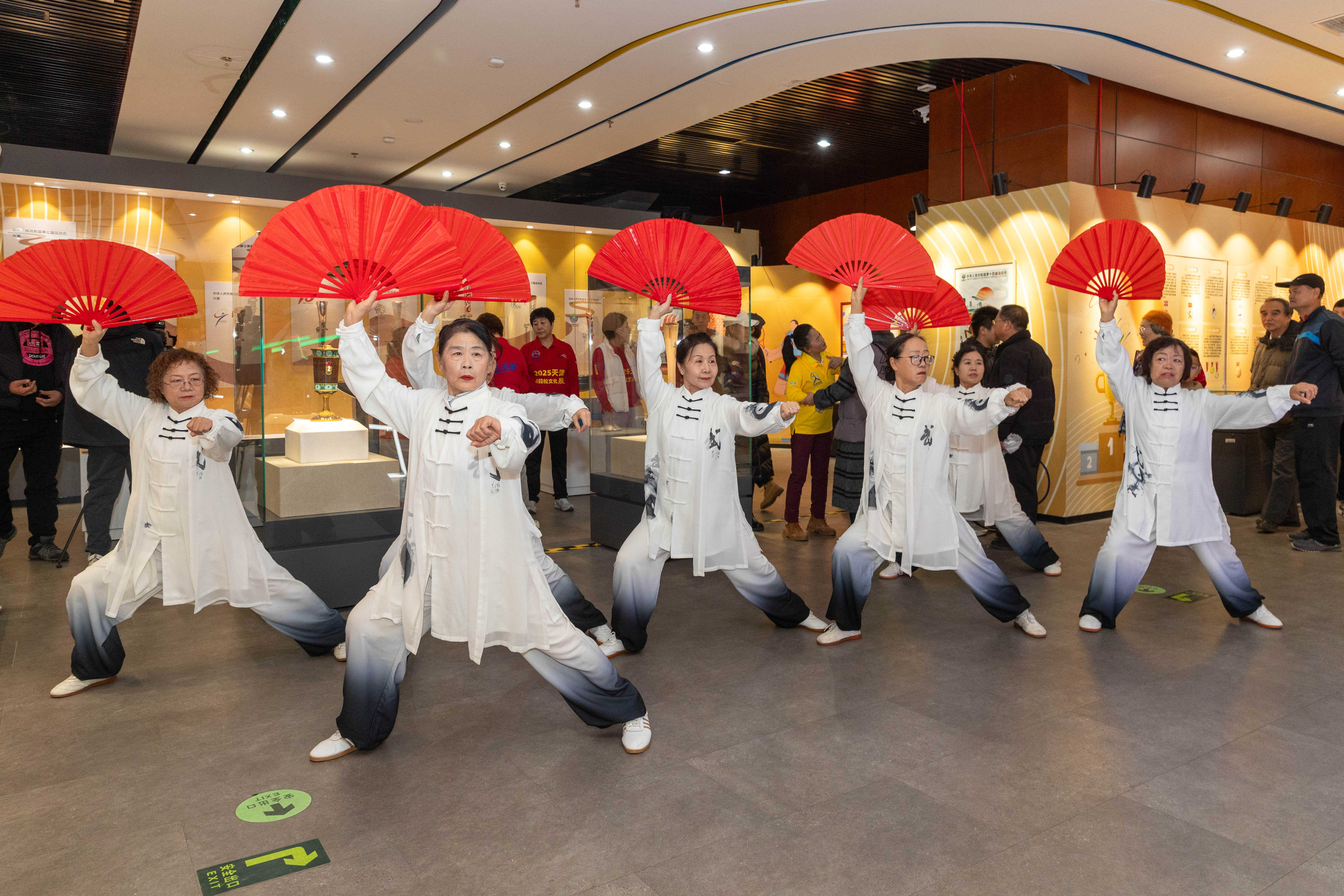 随后,全体来宾共同参观正在展出的“盛会风华—全运会文化藏品展”。展览通过珍贵的实物与史料,重温全运会66年的辉煌历程与天津体育的深厚积淀,第十五届全运会的火炬、金牌等展品受到大家的关注。